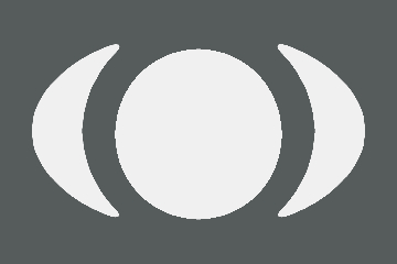 three-part window, in which a circular frame is flanked by two